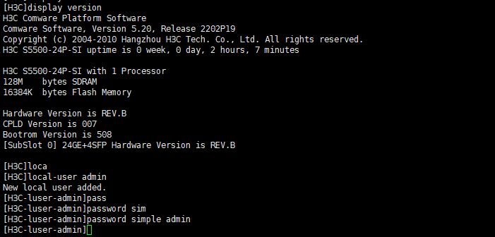 这个配置不了,提示错误[H3C-luser-admin]service-type http https web ^ % Unrecognized command found at '^' position. SER ? 只有ftp、lan-access、ssh、telnet、terminal这些,但是没有恢复出厂之前是可以通过WEB登录的