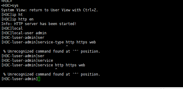 这个配置不了,提示错误[H3C-luser-admin]service-type http https web ^ % Unrecognized command found at '^' position.