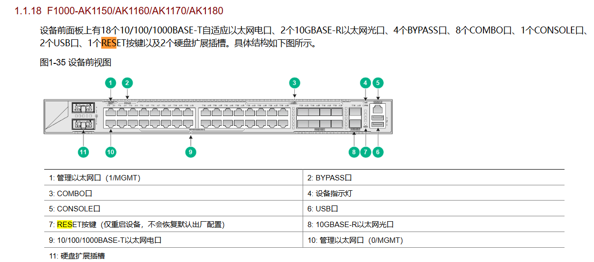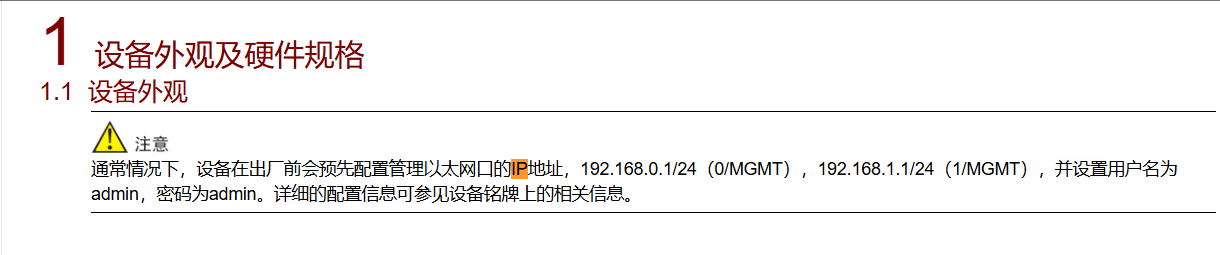 • 重启后,设备将恢复至出厂状态(管理口IP为192.168.0.1/24)。