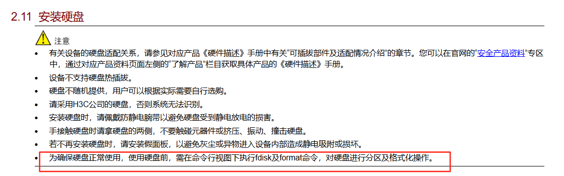 3、为确保硬盘正常使用,使用硬盘前,需在命令行视图下执行