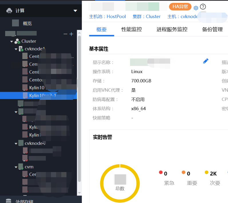 CPU/内存监控:在CVM界面查看CVK主机性能数据。