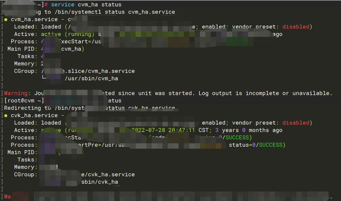 # 所有CVK主机重启cvk_ha service cvk_ha restart