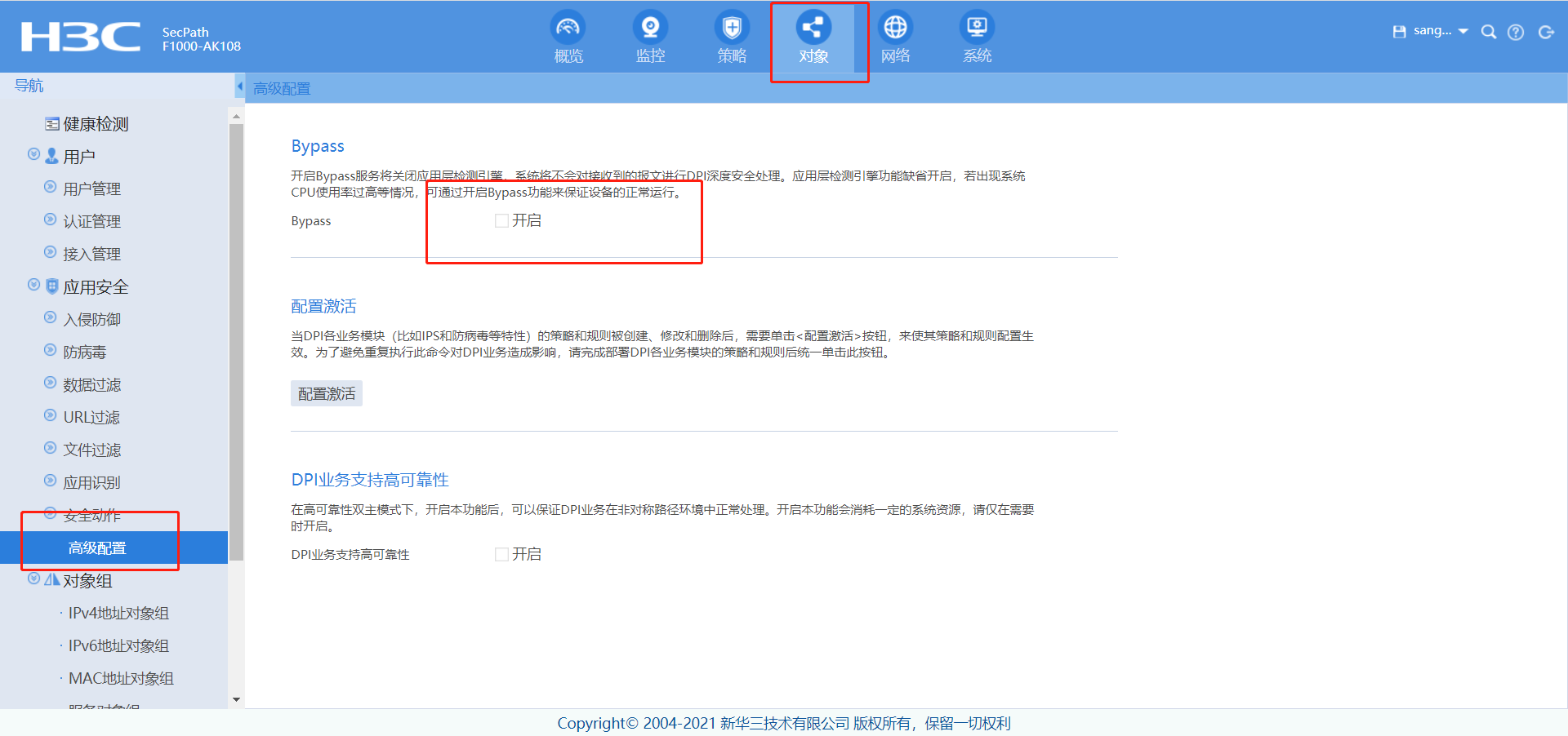 建议查询防火墙中DPI日志看下能不能找到,还有一种方法可以测试开启这个,可以不进行监测,但是会让IPS和AV都失效: