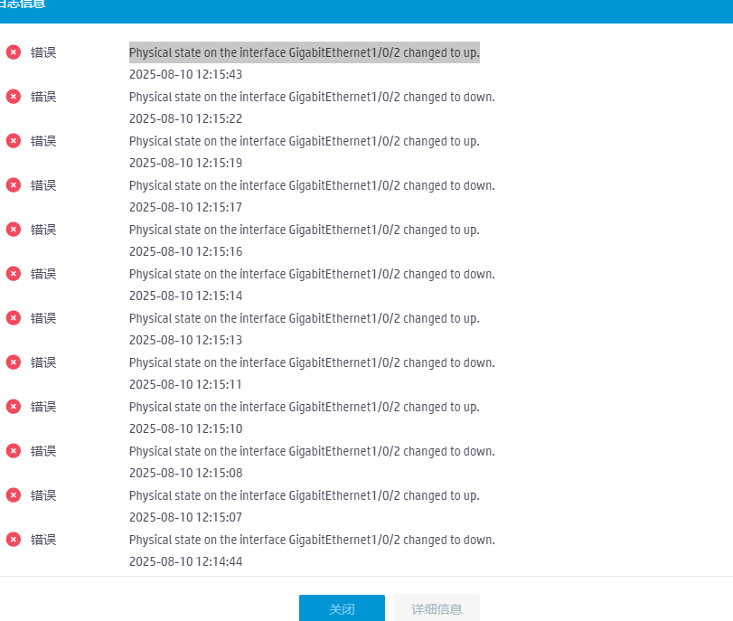 看日志是2口频繁UP/DOWN。建议换一根网线或者尾纤