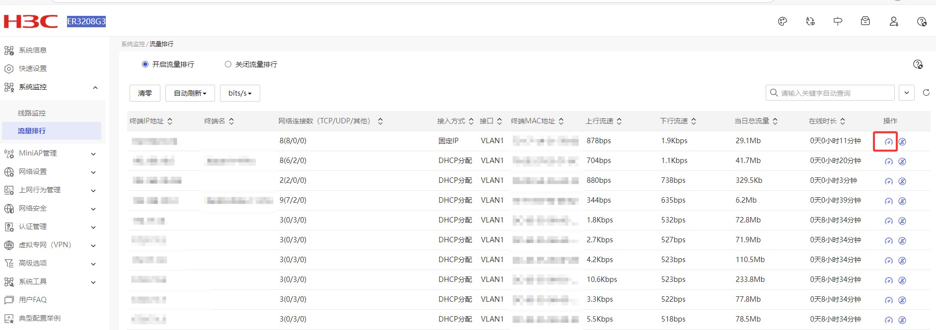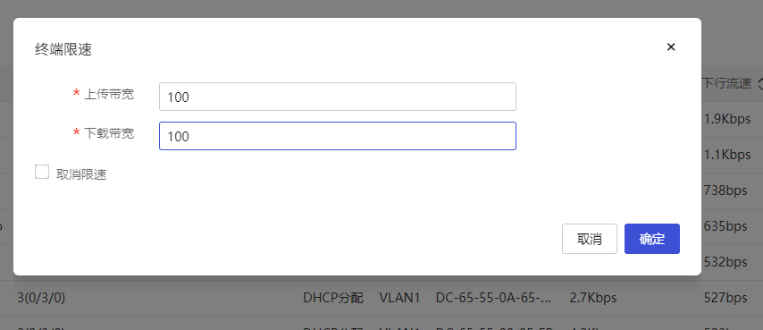 页面向导:[上网行为管理/带宽管理/IP限速]