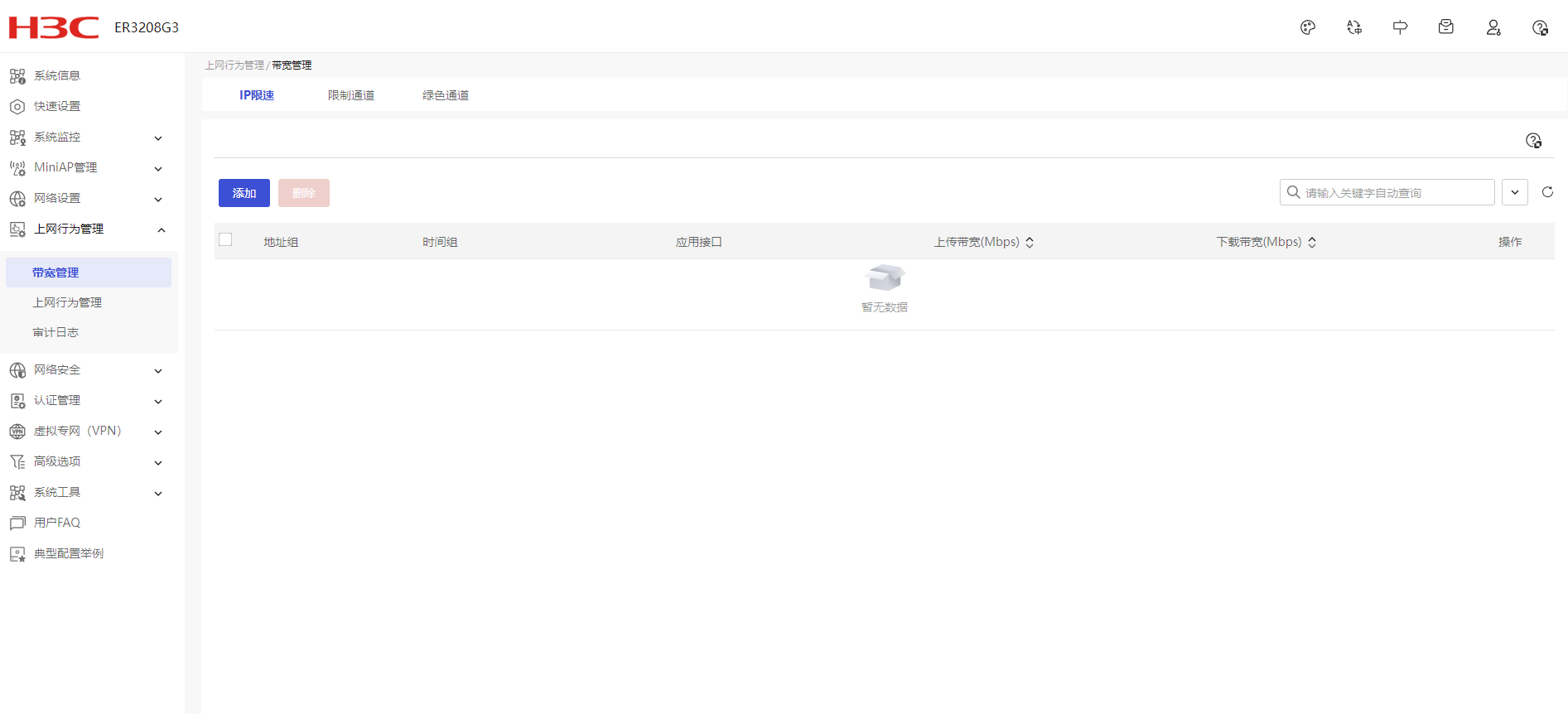 限速是生效的,但是【上网行为管理/带宽管理/IP限速】里是 空