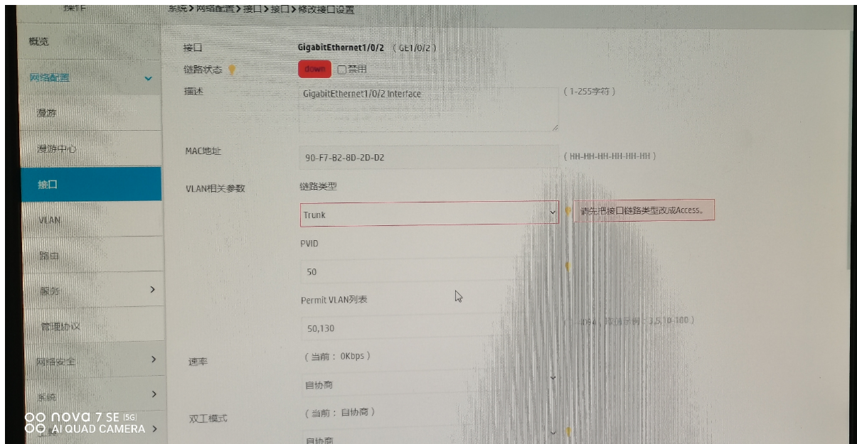 这个接口现在是什么配置,按照提示先把接口改成access,再改成trunk呢