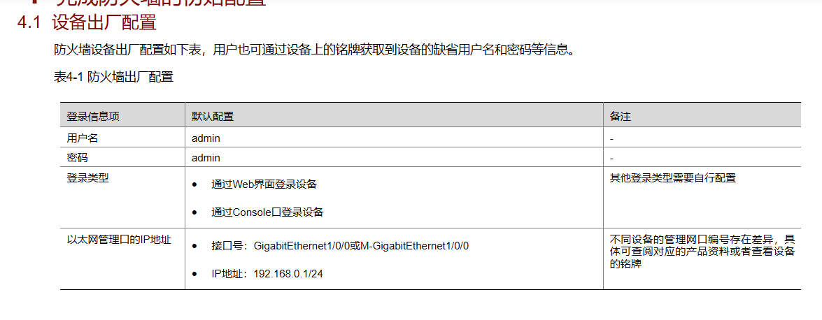 • 设备管理接口的IP地址:192.168.0.1/24