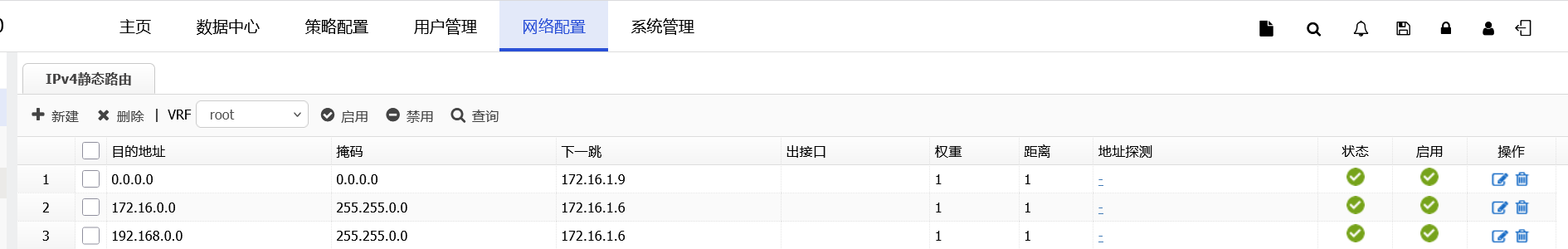 2、配置去往认证网段的静态路由