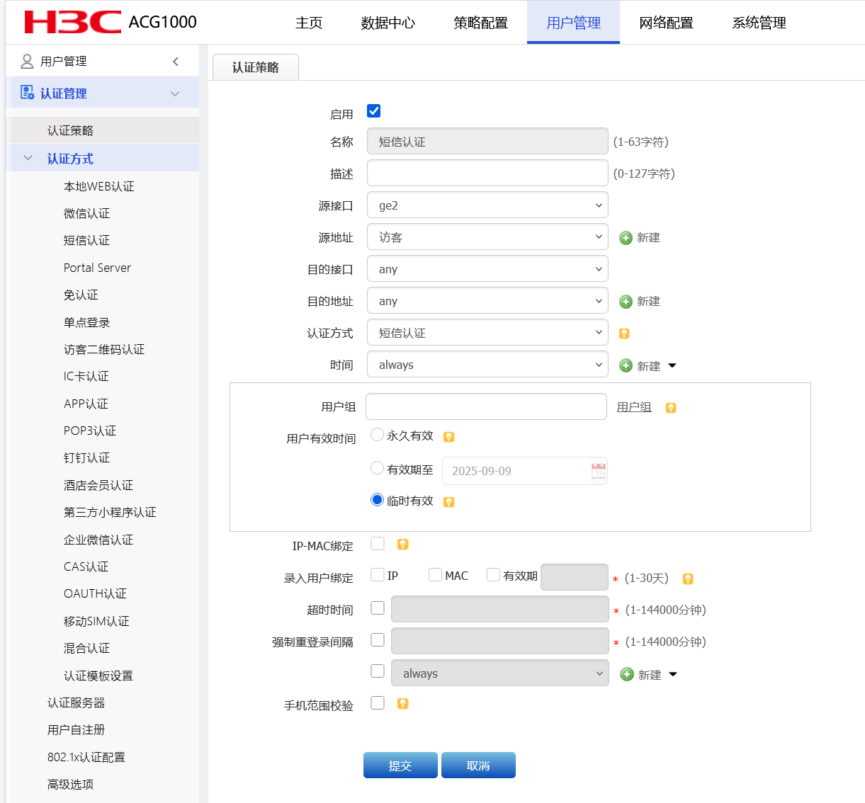 7、配置短信认证策略