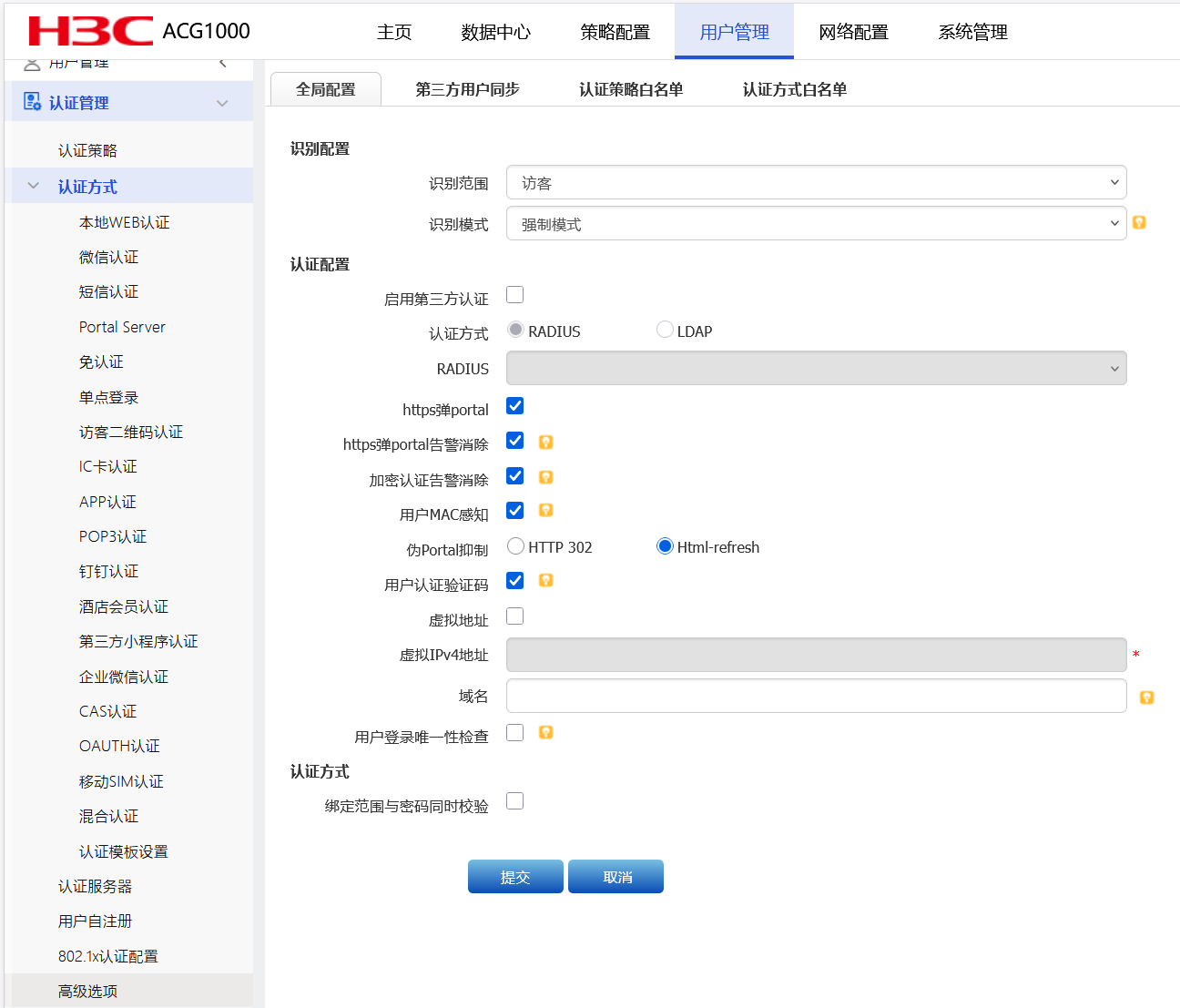 3、配置员工portal认证和访客短信验证的地址段