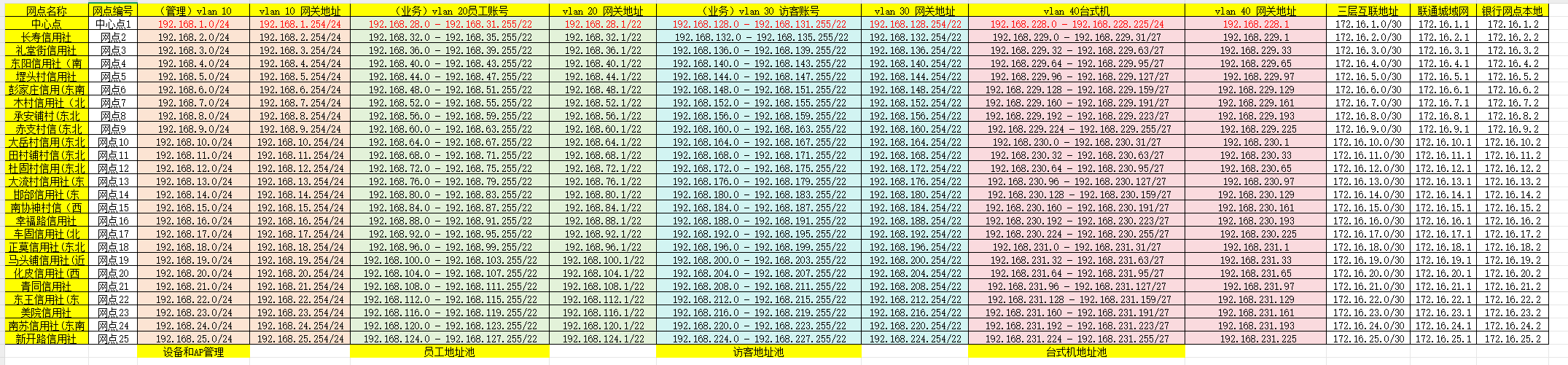 联通公网专线-F1000防火墙-ACG-核心交换机-接入交换机-AP,AC旁挂核心交换机做本地转发,vlan10为设备管理,vlan 20为员工portal认证,vlan 30为访客短信认证,vlan40为台式机