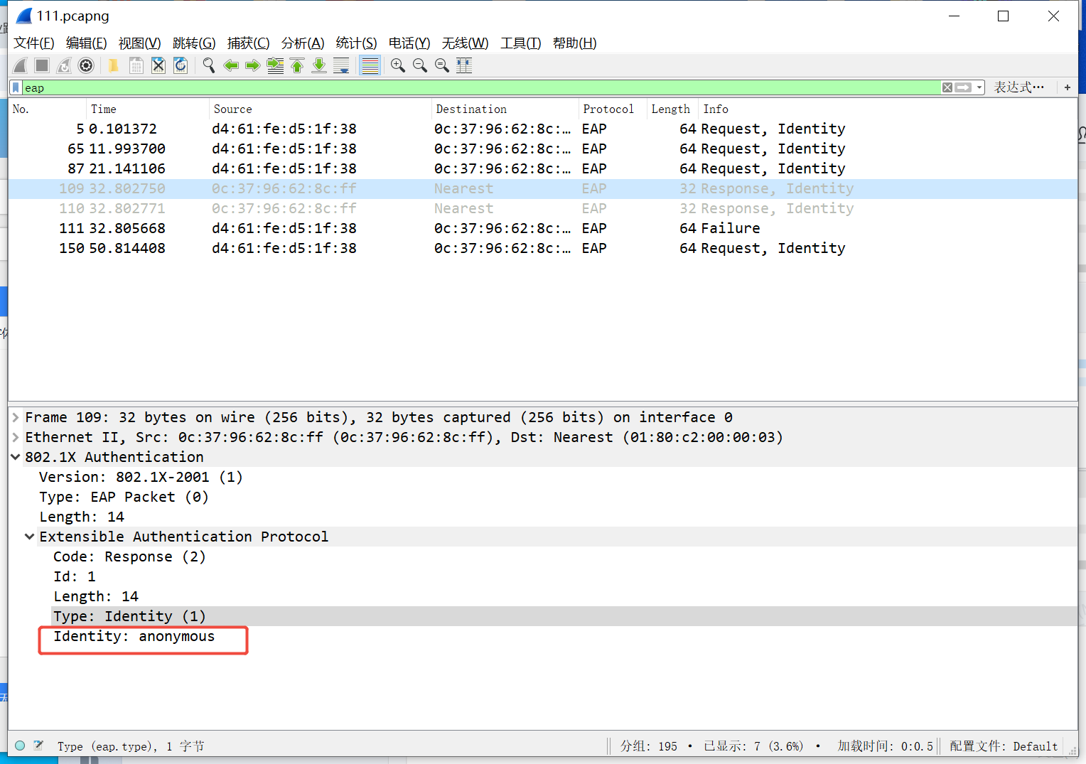 EAP-Request/Identity 字段携带