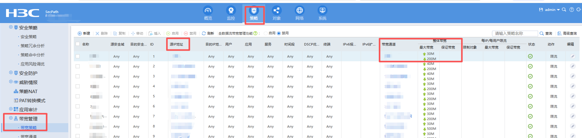 出口设备是一台f1000防火墙,核心一台三层华三交换机 旁挂ac无线控制器,现在想1.识别到是哪一台终端占用大量带宽。2.对单终端限速。有什么思路可以实现。