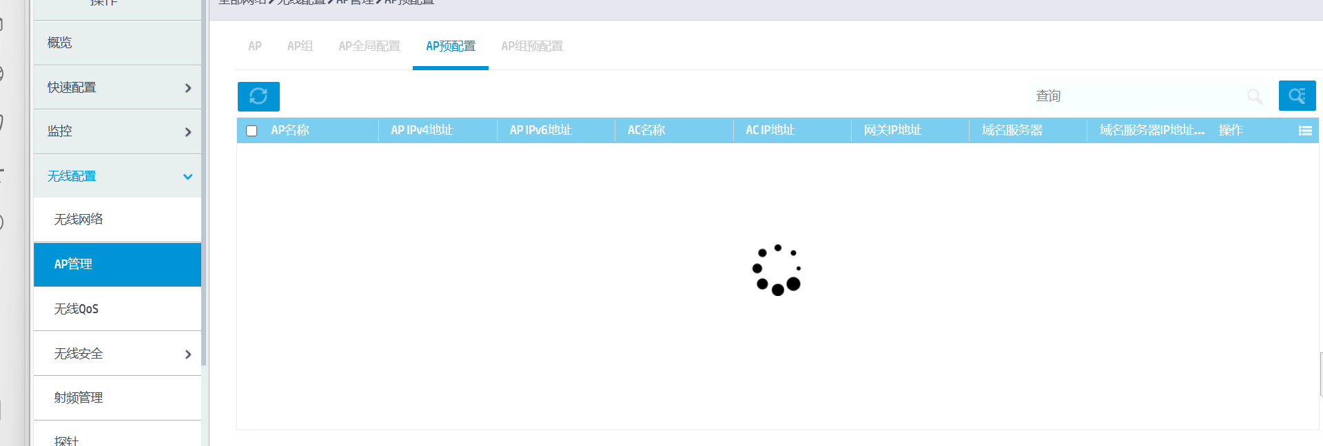 WX3508H升级到CMW710-R5484版本后很多界面无法显示,一直转圈,AP也无法上线。(这是其中几个界面的截图)