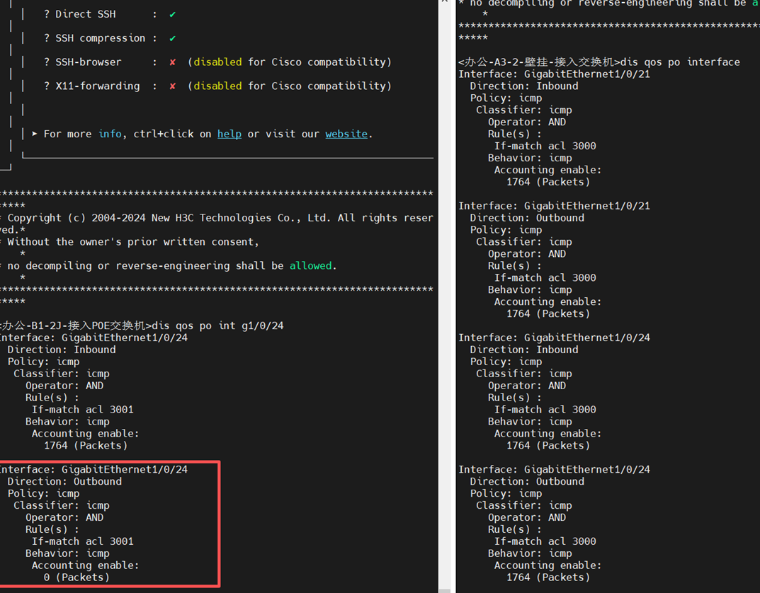 现场做流通,能ping通网关,但是回程的icmp统计不到,acl检查过也没问题