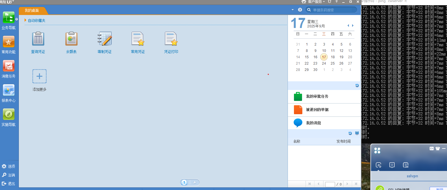 不使用用友,sslvpn连接后,内网的网站和网盘都能正常使用