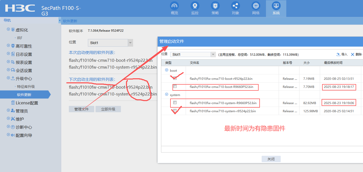 补充一下情况说明:9月初将防火墙固件升级了[F100-C]dis version H3C Comware Software, Version 7.1.064, Release 9660P52 以前旧版虽然卡顿但勉强能用,前面问题总说敏感词没发出来,说的不够清楚,多谢你的解答