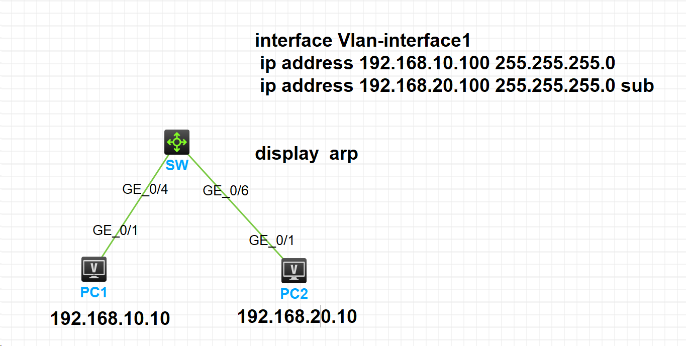 需要在交换机上,先起一个下面终端同网段的地址,然后display arp