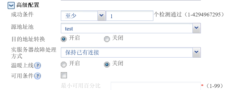编辑[实服务组]时需要填写源地址池(选空业务不通)。