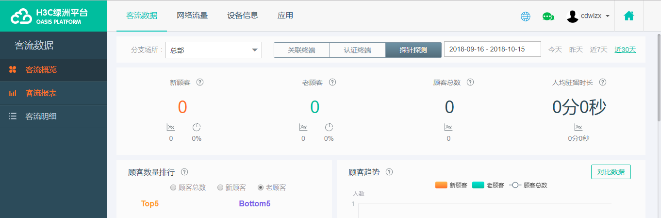 然后你点击客流明细里面的探针数据 就有显示了