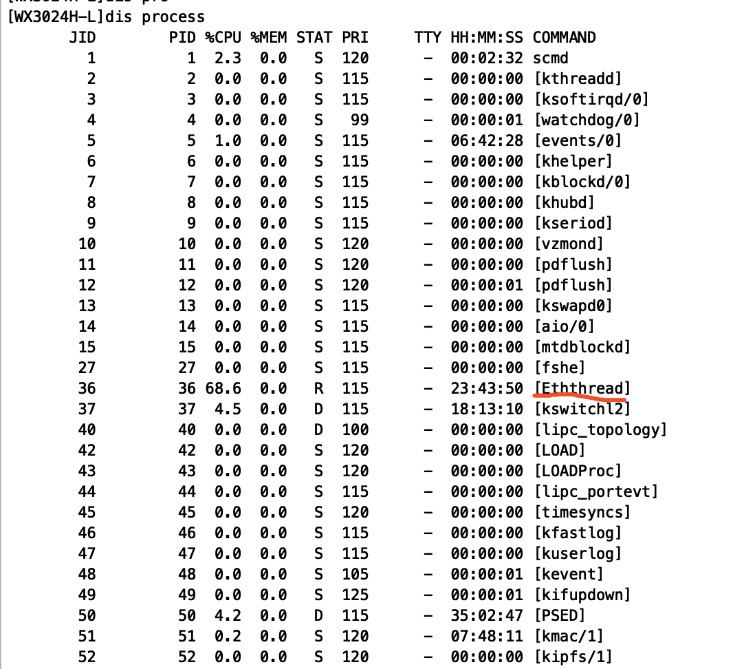 WX3024H-L 空间总是显示占满 cpu总是占用100%,用什么命令看看哪些进程占用的cpu ?