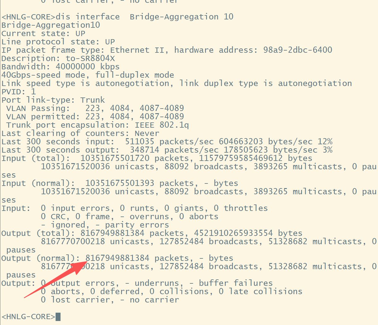 3.查看接口历史使用率:dis int | inc rate