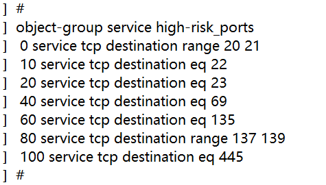 rule 0 deny tcp destination-port eq 21 # 拒绝访问FTP控制端口