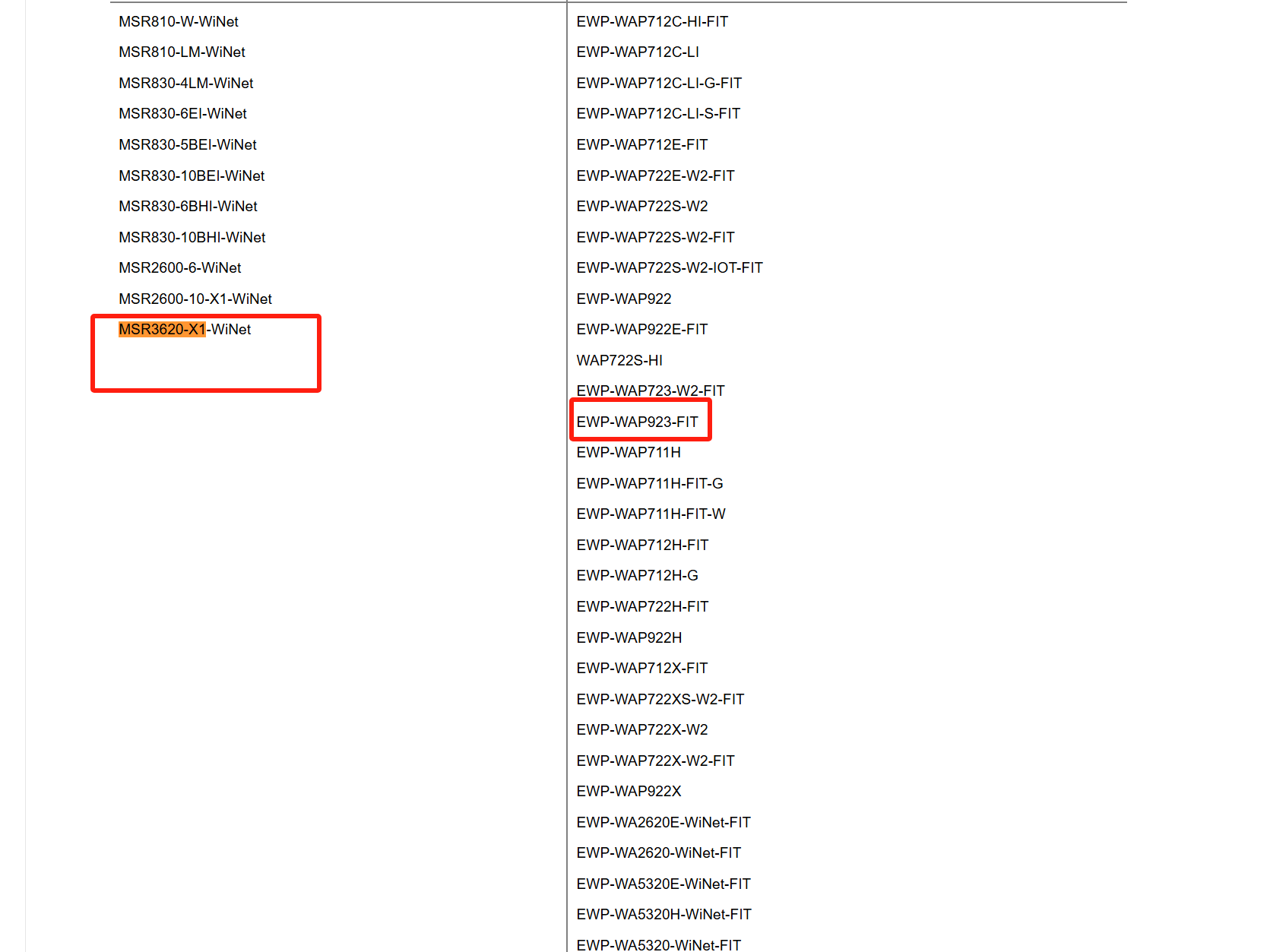 这个表是包括这个型号吧 表3 WiNet主机(不包括MSR3620-X1-WiNet)配套FIT AP列表