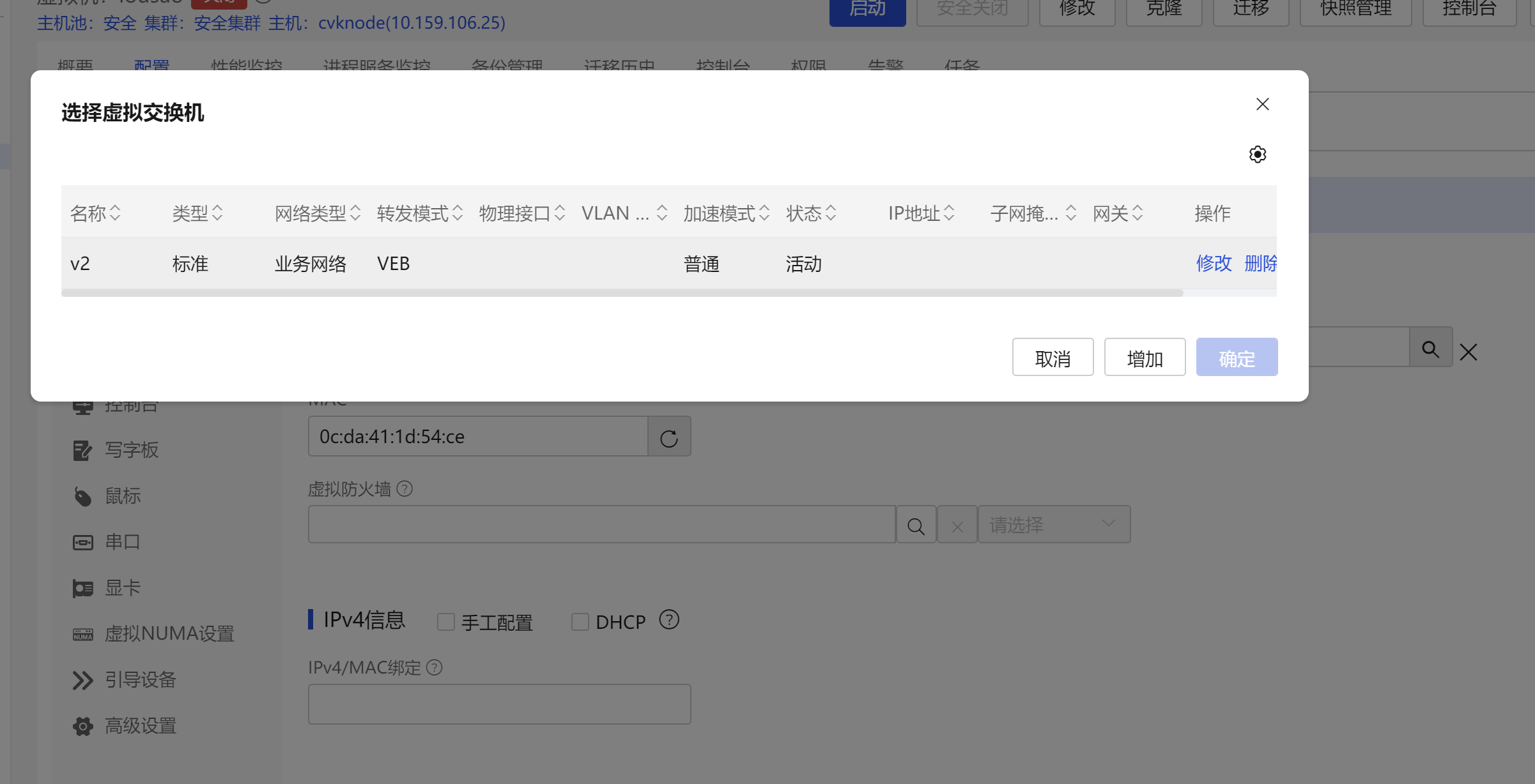 vswitch0且无 “虚拟机复用管理网络” 选项,需从虚拟交换机配置、网络类型、权限设置三方面排查,以下是解决步骤:vswitch0的存在与配置vswitch0是 CAS 默认的管理网络虚拟交换机,若未显示或不可选,需先检查其配置:vswitch0:vswitch0,类型选择 “管理网络”,绑定管理网物理接口(如eth0)。vswitch0配置为 “管理网络”,则不会出现在列表中。需按以下步骤调整:vswitch0的修改界面,将 “网络类型” 改为 **“业务网络”**(若需虚拟机使用该交换机通信)。vswitch0已绑定物理接口(如eth1),且该物理接口已接入业务网络(与网关、其他设备互通)。vswitch0),需在主机网络配置中启用该功能:vswitch0会自动变为 “业务网络” 类型,可在虚拟机网络选择界面中显示。admin角色)。vswitch0,需将其网络类型改为 “业务网络” 并绑定物理接口;vswitch0会出现在虚拟机网络选择列表中,“虚拟机复用管理网络” 选项也会正常显示。(0)