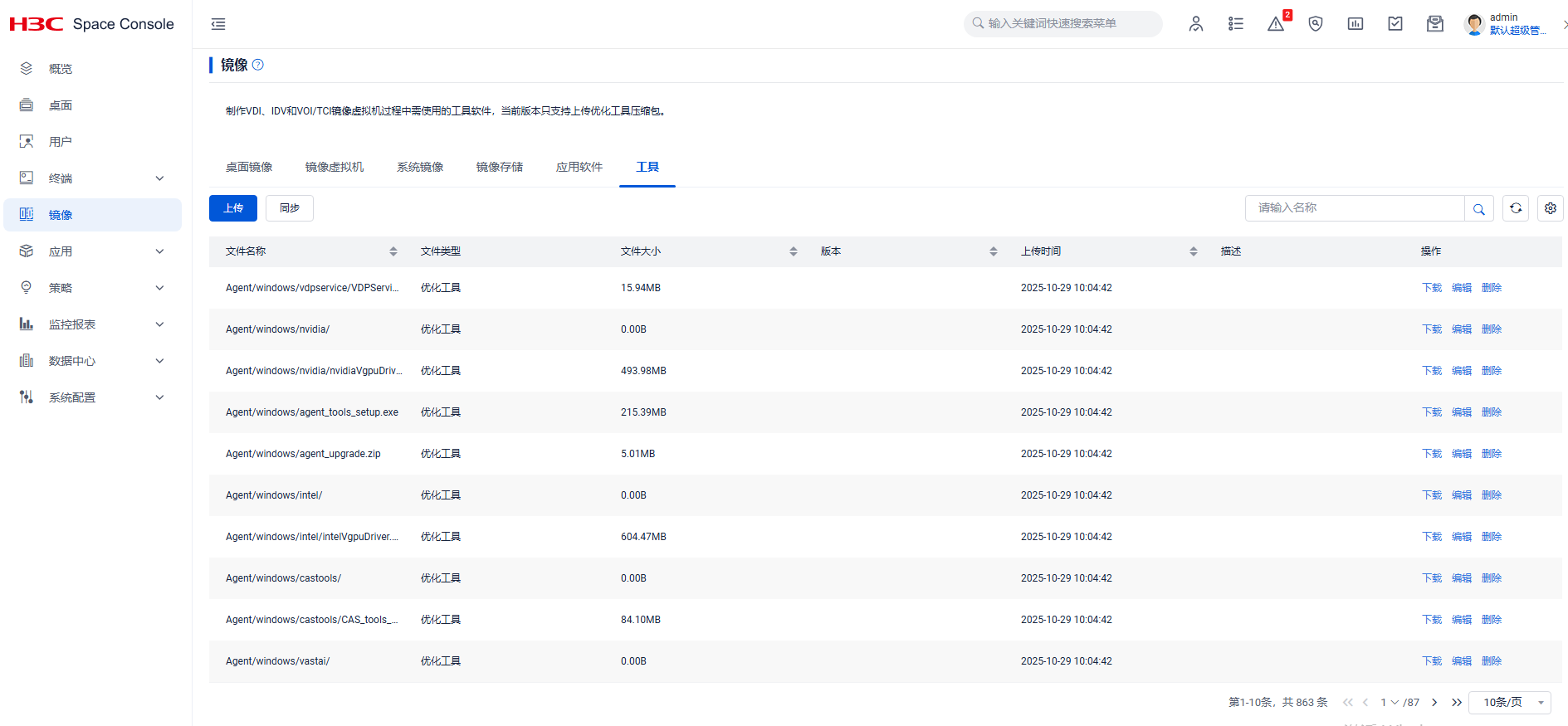 所有上传的优化工具文件存储在管理平台的 /vms/isos/ 目录下: