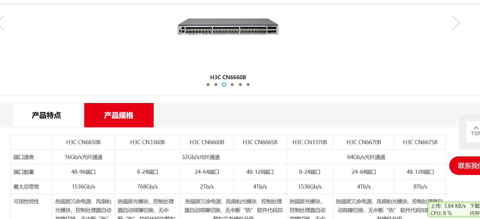 看官网彩页的图片猜测是有的。H3C CN光纤通道交换机