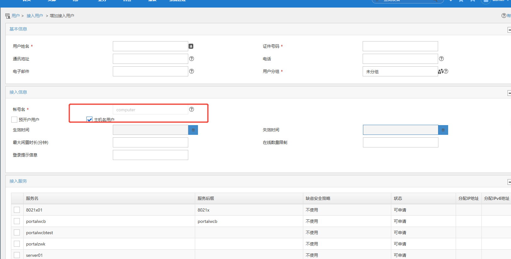 这个如果选这个主机名用户认证的话就创建一个接入用户就可以了吗,那最后认证的在线用户怎么区别,都是这一个主机名吗还是不同在线用户能区别开