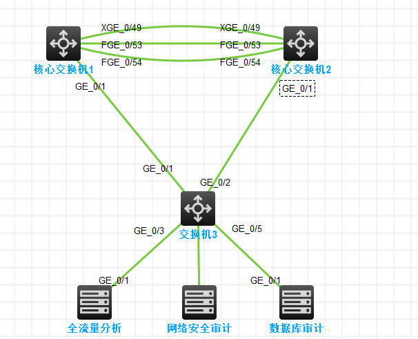 交换机3interface Ten-GigabitEthernet1/0/1 port link-mode bridge description TO-HX-01 port link-type trunk undo port trunk permit vlan 1 port trunk permit vlan 4090 核心交换机1 interface Ten-GigabitEthernet2/0/9 port link-mode bridge description TO-jingxiang port link-type trunk undo port trunk permit vlan 1 port trunk permit vlan 4090 mirroring-group 1 monitor-egress 好像配置都一样