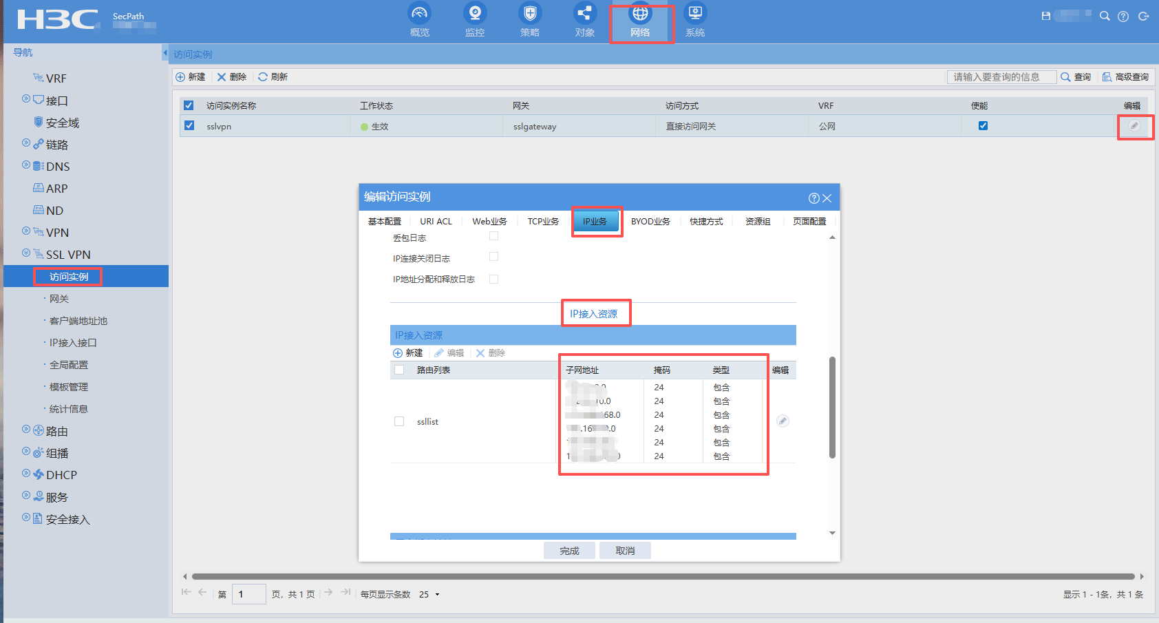 F1000-AK155如何配置ssl vpn访问策略,配置可访问的IP地址段