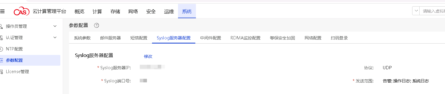 在CAS平台配置Syslog服务器的操作步骤如下: