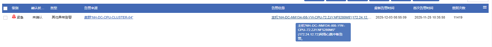 您好,1.可以看下主机池那里网络存储心跳设置的网段确认是管理网还是存储网 2.可以查看联机帮助,确认该参数是否为对应的告警提示 3.一般是网络问题,具体原因是什么需要查看后台日志确认,如果比较重要可以拨打400确认下。