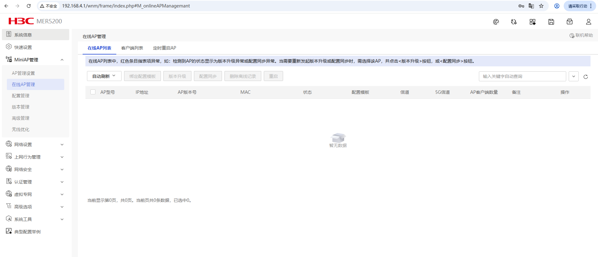 MER5200路由器已更新到最新版,在线AP里面一片空白,也无法管理新加的AP,不能下发ssid,是什么问题?