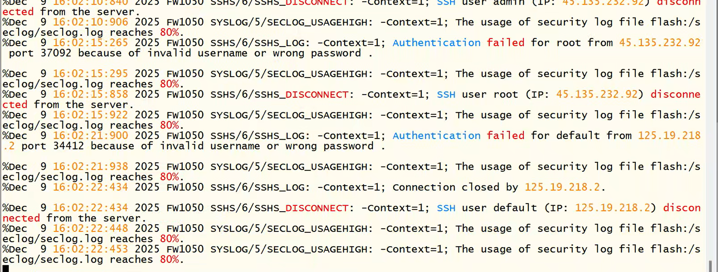 SSH暴力破解攻击:IP 45.135.232.92和 125.19.218.2正在尝试攻击