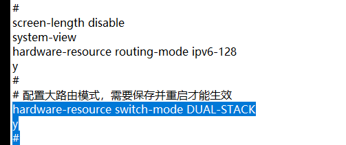 - `routing-mode ipv6-128` 支持的IPv6路由表项、ACL、FIB等资源分配;