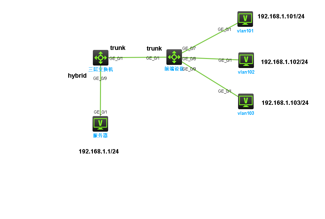 vlan101的电脑:192.168.1.101/24 192.168.1.254