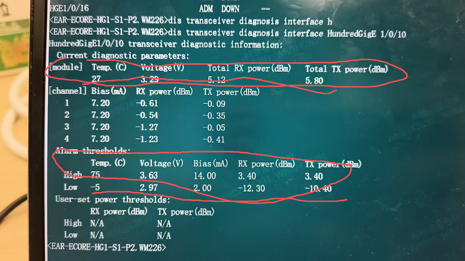 [channel] Bias(mA) RX power(dBm) TX power(dBm)