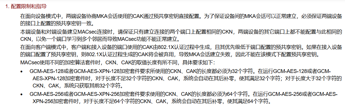 MACsec CAK:使用设备生成的随机密钥,勿使用简单字符串。