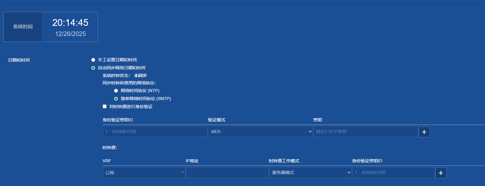 交换机设置时间以后,经过一段时间就不准了,想请问这个自动同步网络时间里面的内容怎么填才能生效呢,谢谢各位。