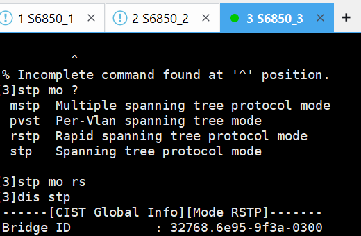 模拟器stp模式是不是不能切换到rstp