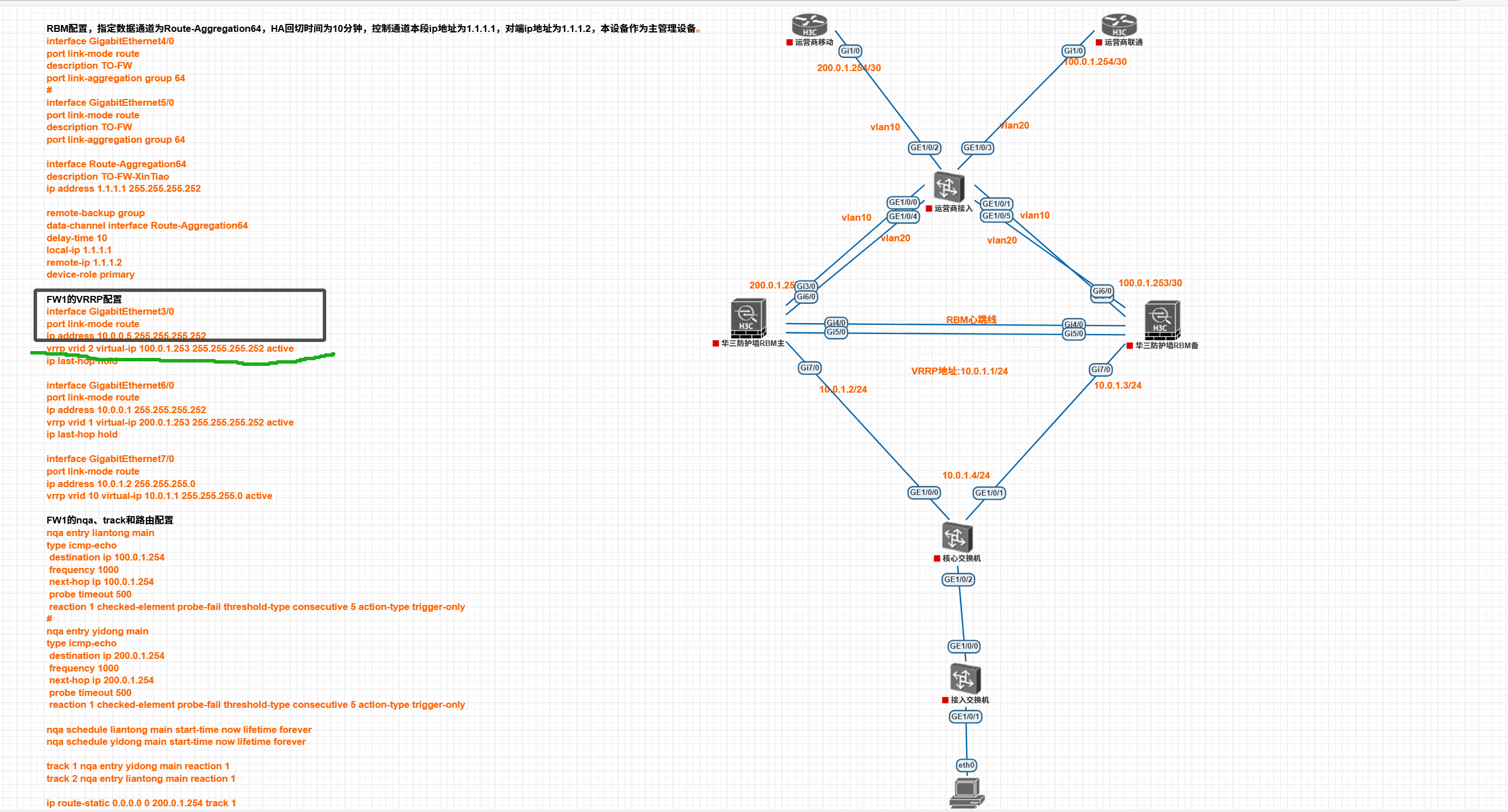 可以,但是不建议,现网部署中存在非常明缺的缺陷,出口使用vrrp组网方式,发送ARP请求使用的是VRRP虚MAC,而设备发送IMCP封装的MAC使用的是真实的物理MAC,两个MAC不一致的触发运营商的arp防范功能,会导致两端设备的arp表项都无法更新,待arp表项老化后,会导致业务中断。