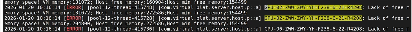 主机可用内存:272586 MB 虚拟机内存需求:131072 MB 计算结果:272586 - 131072 = 141514 MB 虚拟机内存预留:154499 MB 检查结果:141514 < 154499 ❌ 失败