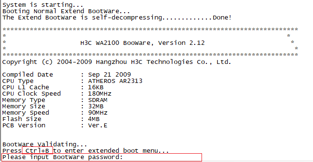 无线AP WA2110-AG通电,ctrl+B进入bootware菜单,BootWare密码不知道,如何解除密码进入到BootWare菜单,才能把固件版本刷成胖版本呢。
