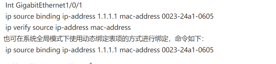 端口下配置了 ip sou bing ip mac vlan 启用ip ver sou ip mac 地址配置错误后 还能上网 为啥不生效