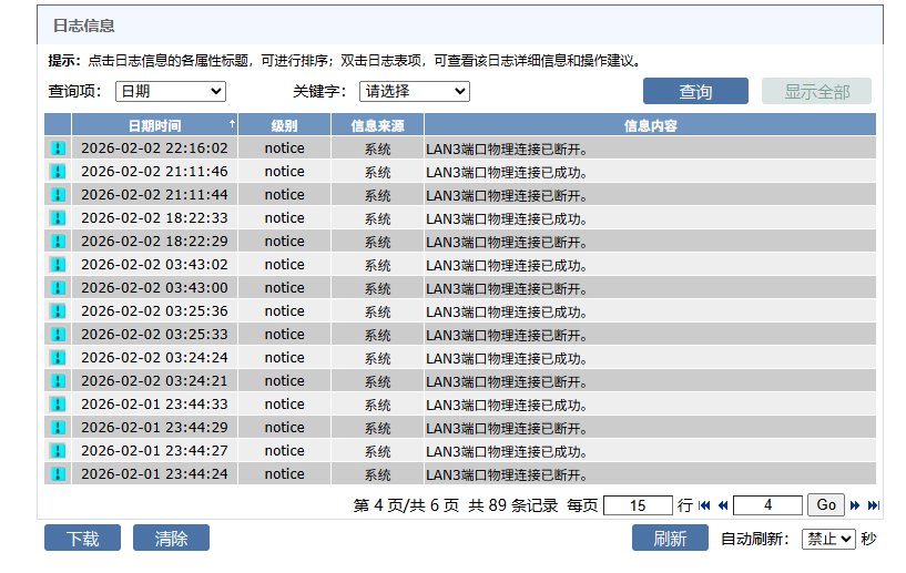 如果用WAN口也是频繁up/down,那就得排查墙上网口到接入交换机的网线链路有没有问题了